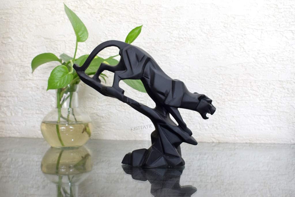 Black Panther Sculpture - Geometric Art Piece Featuring a Majestic Big Cat
