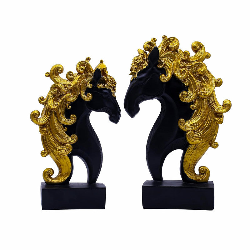 Luxury Decor: Black horse statues with golden manes add a touch of elegance to any room
