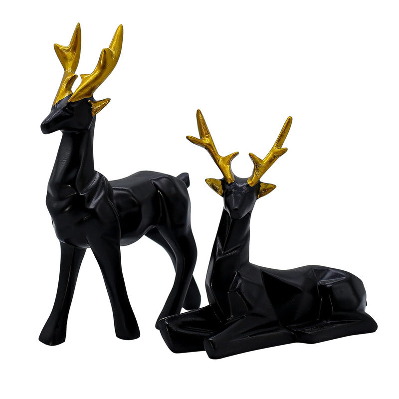 Elegant Black Deer Statues with Golden Antlers - Perfect Home Decor for Modern Living Spaces