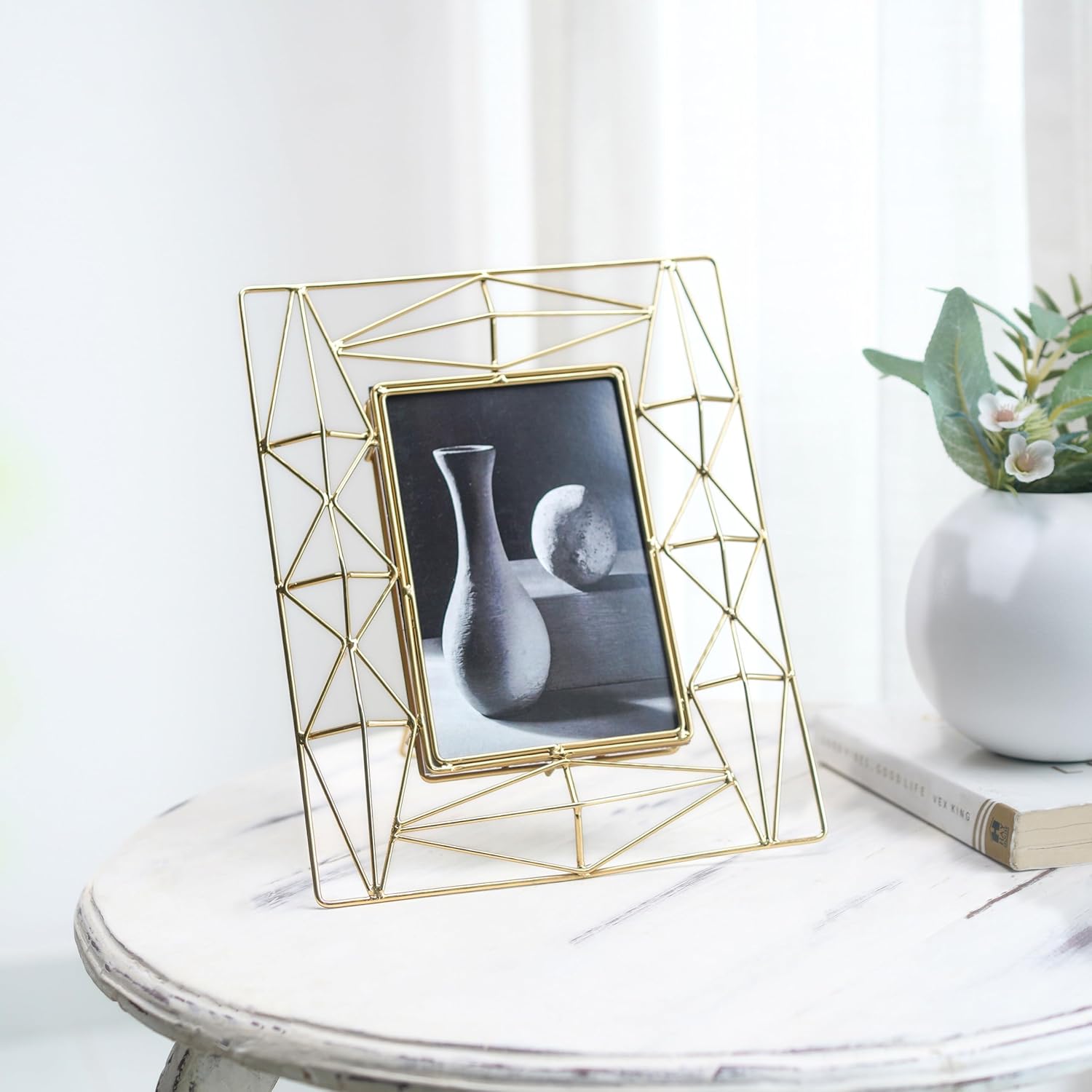 Elegant Golden Metal Geometric Designer Rectangular Table Top Photo Frame | Best Gift for home decor, Birthday, Anniversary, Valentine's day