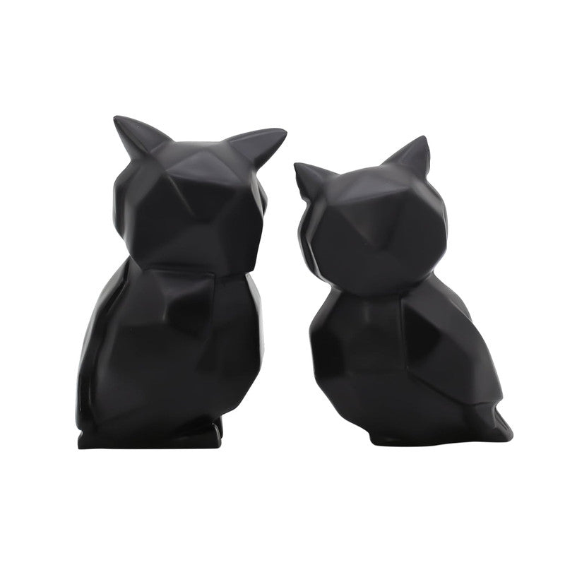 Elevate your space with this exquisite Black Owl Figurine Duo with Gold Eyes, a contemporary art piece that blends minimalist geometry with refined metallic accents. Sculpted to capture both modern elegance and symbolic depth, these owl figures present a strong visual contrast—sleek black forms paired with striking golden eyes that instantly engage and captivate.Each owl is crafted with attention to angular lines and smooth surfaces, giving the duo a timeless yet avant-garde appeal. The sharp, polished gold detailing in the eyes adds a luxurious, almost hypnotic focal point, making them ideal for creating a dramatic centerpiece in any room.