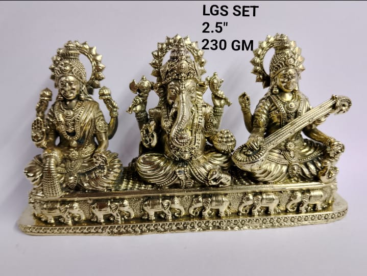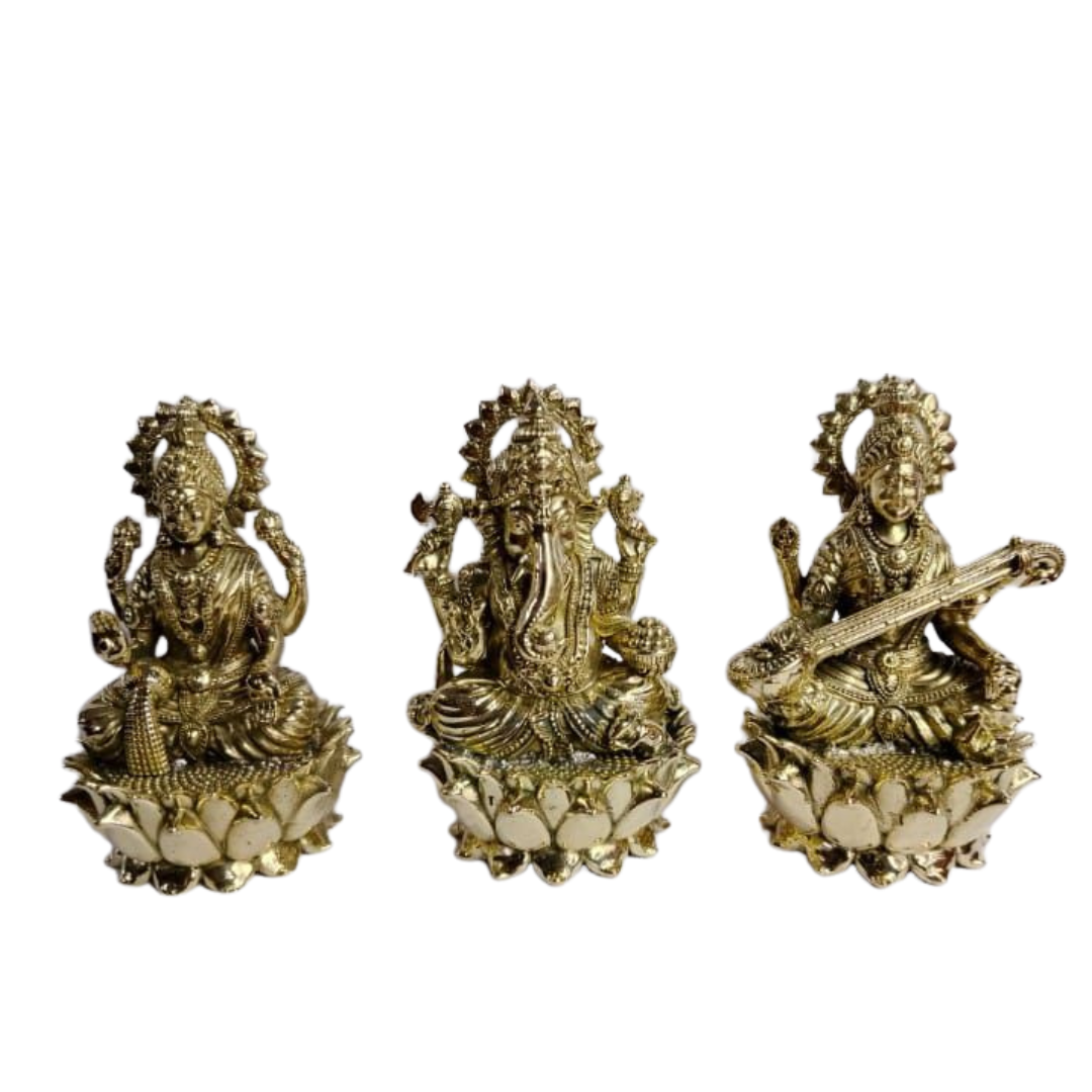 Navkara Laxmi Ganesh Saraswati Idol Set ā 2.5 Inch | Brass Finish | 230g | Decorative & Spiritual Gift