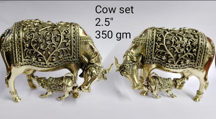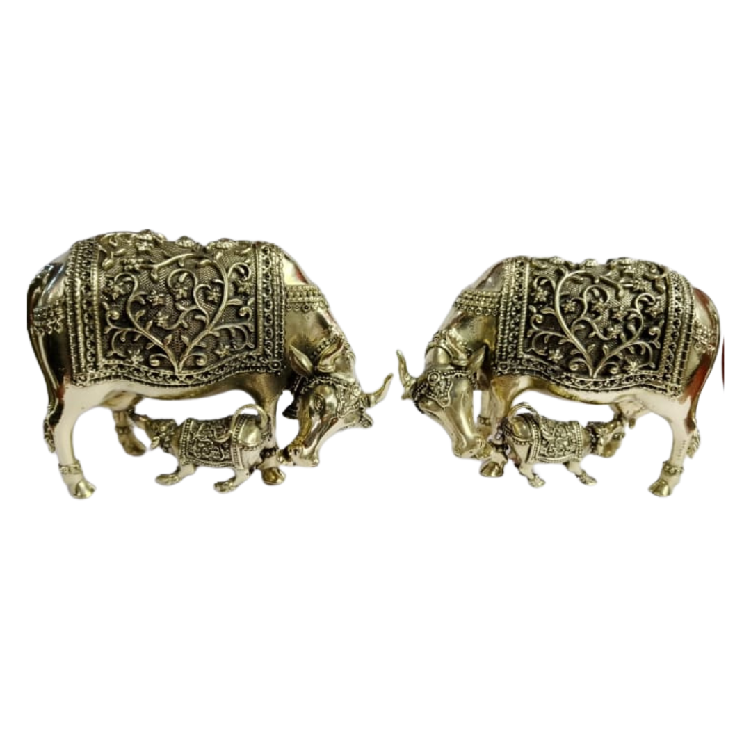 - š Premium Brass Finish ā Intricately crafted cow and calf idol with detailed traditional design.